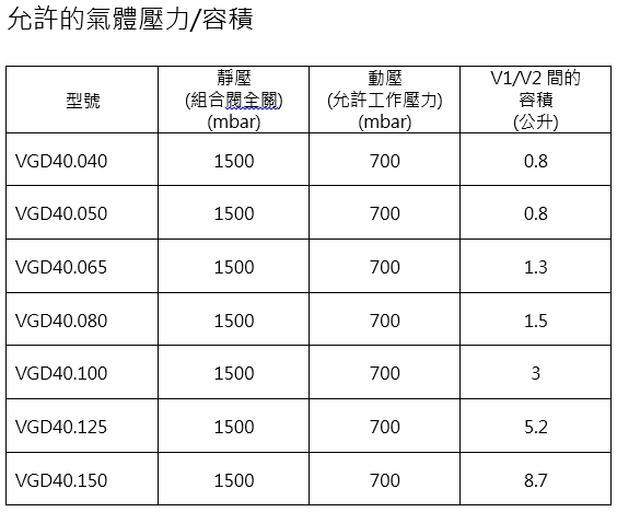 功  能:除了關斷功能,可協助管路進行調壓,標準彈簧調壓範圍0~22 mbar